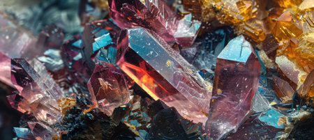 Abstract crystal formations overlay texture showcasing vivid hues and intricate patterns