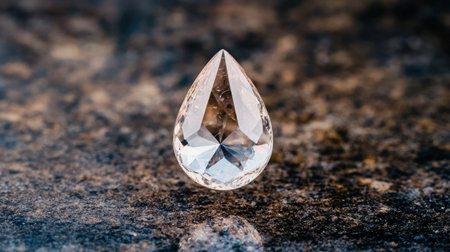 Beautiful, sparkling gemstone in teardrop shape rests on smooth, wet stones, reflecting light with vibrant colors. scene evokes sense of tranquility and elegance