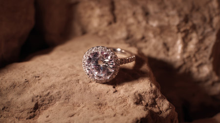 Stunning diamond ring showcased against a shimmering background, highlighting its brilliance and elegance. Perfect for celebrating love and special occasions.