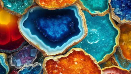 Vibrant crystals shine with kaleidoscopic beauty, illuminating the power of nature's treasures