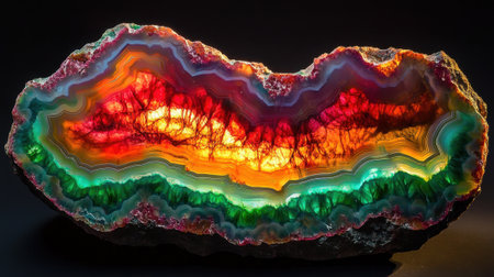 Colors blend beautifully in the intricate layers of agate stone, showing the natural patterns formed over time. The luminescence creates a striking visual effect.