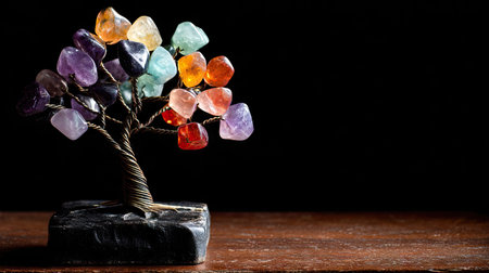 colorful gems on a tree in a pot on a black background