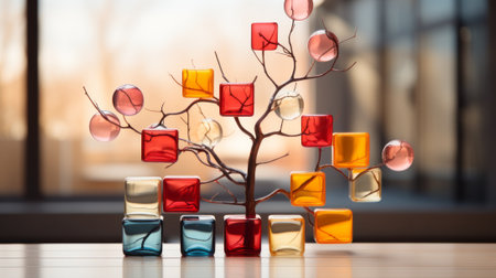 A sculpture in the form of a tree made of colored glass