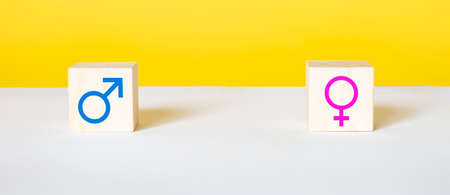 Gender icon on wooden blocks. Gender equality concepts.