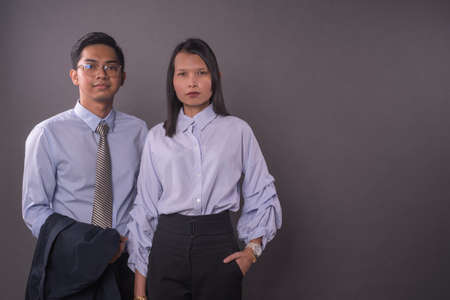 Asian business man and woman.Asian female and male model wearing office attire.