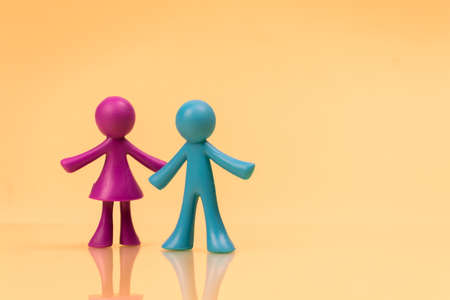 Symbol of man and woman in hands on color stickers. The concept of psychology of relationships. Toned