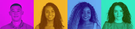 Beautiful young people calmly smiling on colorful background. Duotone effect