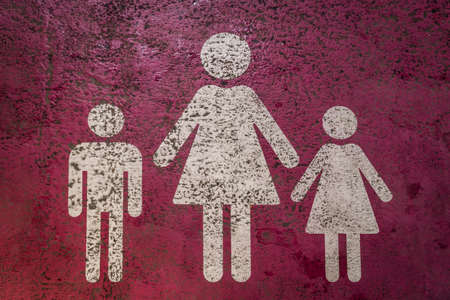 Male and female symbols on two tone background