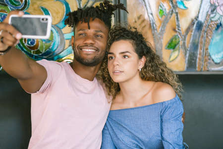 Couple taking a selfie with a mobile phone.