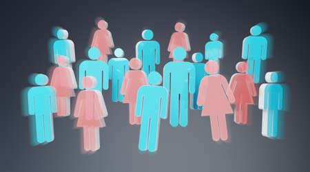 3D rendering group of people with blue man and pink woman on grey background