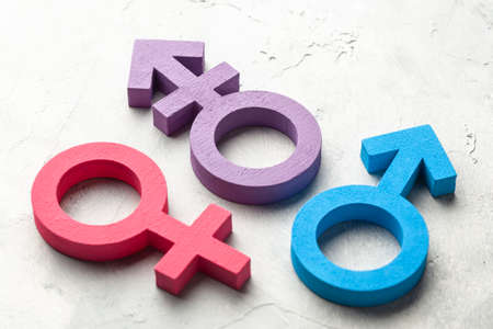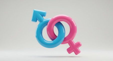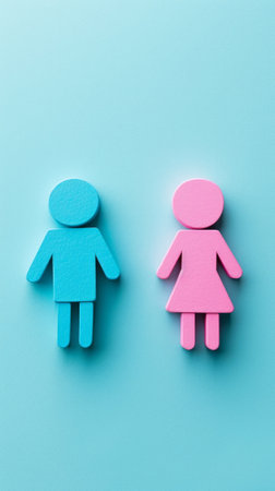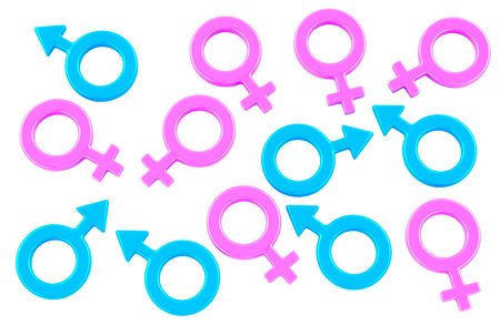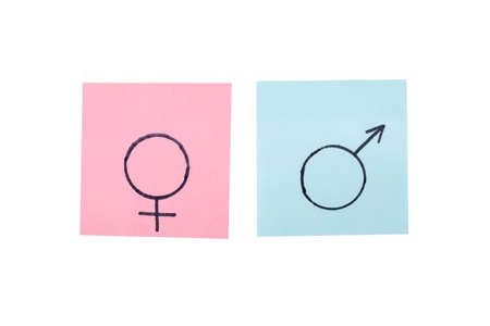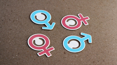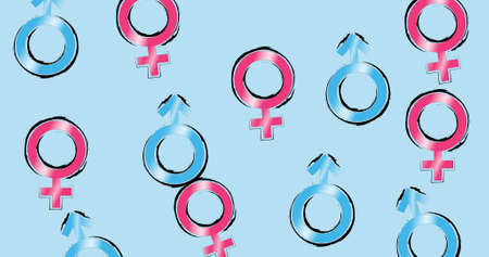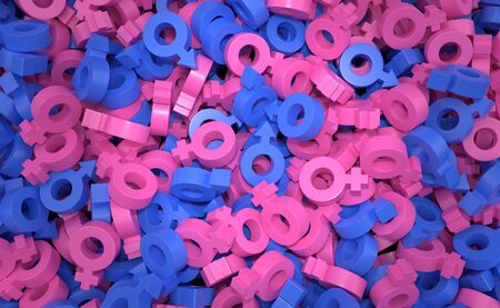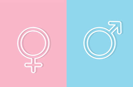 Male and female symbols. Pink and blue female and male signs. Gender equality conceptual image, the meaning of sex and equality of male and female on blu background, sexual orientation icon.