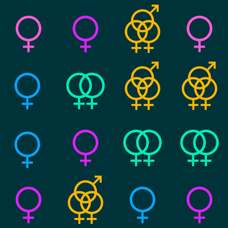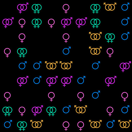LGBT seamless pattern of male and female symbols. Mars and Venus icons. Illustration sexual orientation and gender template for prints, textiles, wrapping, wallpaper, website etc.