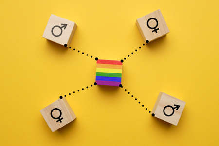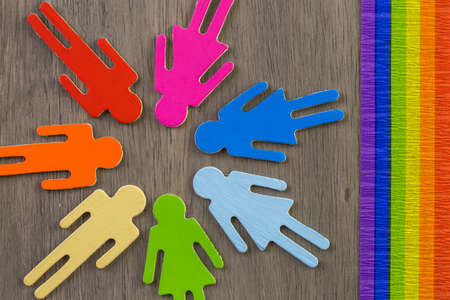 Spectacular colorful wooden cubes with the colors of the LGBTQ gay pride flag with the word gender.