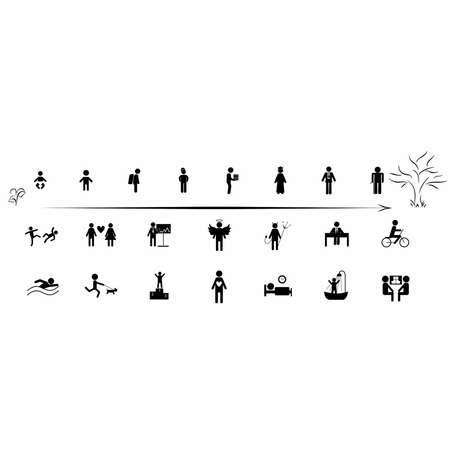 Line of Vibrantly Colored Male Icons on Simple Light Grey Surface