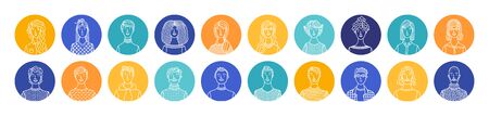 Linear people icons set. Vector user avatars. Outlined minimalistic icons. Men and women portraits set. People profile pictures. Cartoon avatars for game, internet forum, or web account