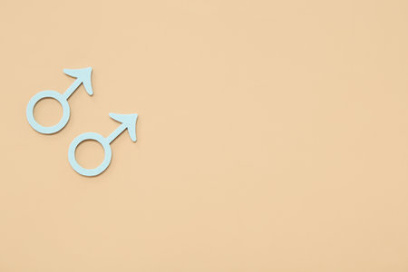 gender equality. Cards with male and female symbols on color background, flat lay. Space for text