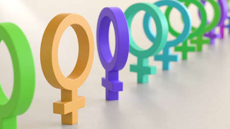 Gender signs illustration for lgbt themed background with two sexual female couple symbols. 3D gender signs for pride month or same sex marriage greeting cards. 3D illustration