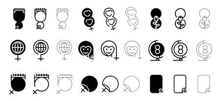 Women's day editable line icon set. 8 March day logo-web icon. International women holiday symbols collection, vector illustrations, logo illustrations