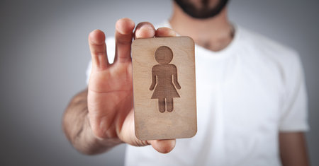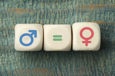 Equality concept using gender symbols on wooden blocks representing men and women, equal rights
