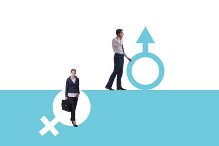 Concept of gender equality. Icons of male and female with an equal sign, on a pink-blue background. Equality between men and women. Lifestyle. Business. Job.
