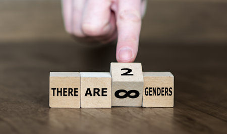 Cubes form the expressions 'there are infinite genders' and 'there are two genders'.