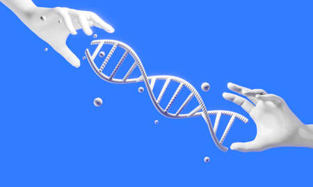 hand with dna human helix molecules cell, research of science biological,man with blood structure genome, 3d illustration rendering
