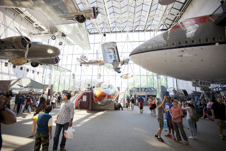WASHINGTON DC - APRIL 10: National Air and Space museum in Washington on April 10, 2014. It holds the largest collection of historic aircraft and spacecraft in the world. Open for public at July 14, 2010