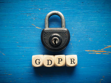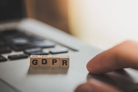 GDPR: Wooden cubes with letters “GDPR†lying on a laptop. General Data Protection Regulation