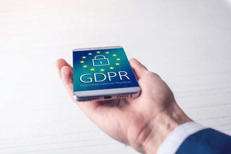 Melbourne, Australia - May 17, 2018: GDRP notice on a mobile phone. General Data Protection Regulation is an EU law on data protection and privacy coming into effect 25 May 2018.