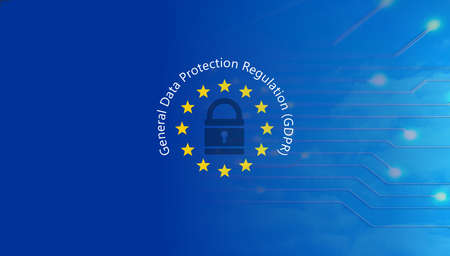 General Data Protection Regulation GDPR . The text with the EU flag depicted on the tablet