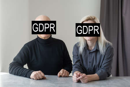 a large family of people behind the inscription GDPR. General data protection regulation. Cyber security and privacy