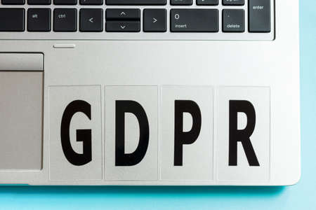 blue keyboard key with text GDPR as symbol for Privacy and General Data Protection Regulation on a notebook computer