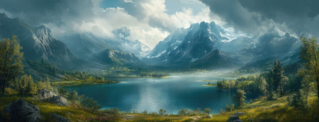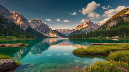 Beautiful mountain lake with reflection in water. Dramatic scene.
