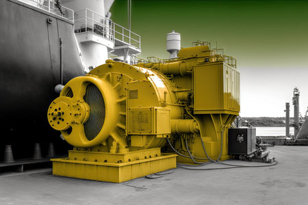 Panoramic view of electric motors on a merchant ship