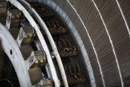 Close-up shot of a stator from a big electric motor.