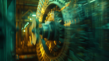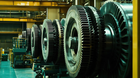 A detailed view of large industrial gears in a manufacturing facility showcases the complexity of precision engineering in heavy machinery and advanced manufacturing processes.