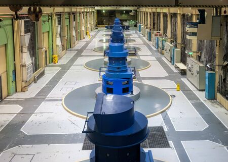 Machine hall of Manapouri underground hydroelectric power station in the South Island of New Zealand