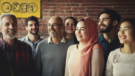 composition featuring a collection of people of various ages, genders, and races, all with beaming smiles. Captures the spirit of unity and happiness.