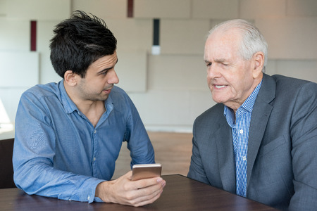 Grandchild shows grandfather smartphone