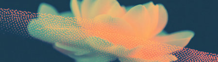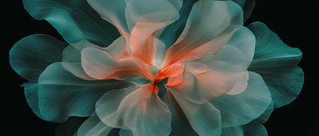 Abstract petal patterns create an artistic overlay on a black background for visual impact