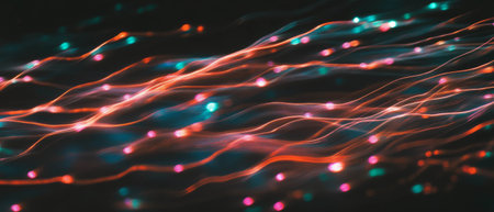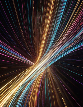 A dynamic scene of luminous, multicolored lines weaving through a dark background, forming a complex web of data pathways and cutting-edge connectivity.