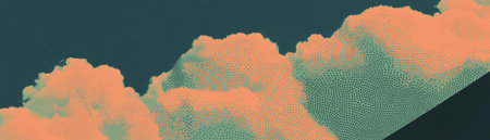 Close-up view of textured clouds captured from below showcasing halftone patterns