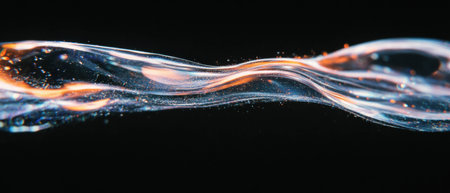 This image captures abstract flowing shapes, illuminated by warm light against a dark backdrop. The delicate textures and patterns evoke feelings of beauty and fluidity.