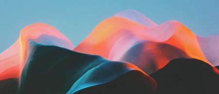 Colorful gradients flowing smoothly across a serene background landscape