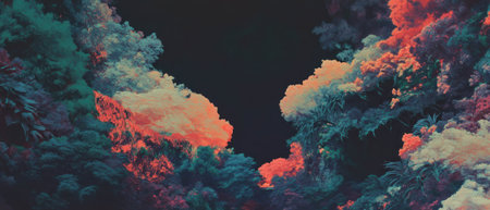 Abstract representation of natures elements with vibrant colors and textures of flora