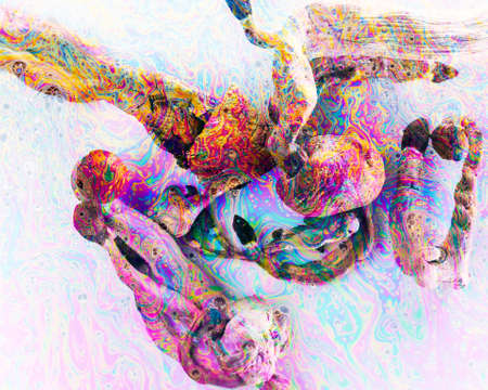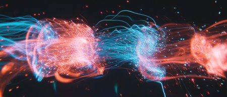Abstract underwater design glowing nerve cells in multi colored chaos generated by artificial intelligence