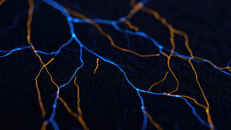 Abstract electric nerves or lightning-style glowing branches over dark background. Sci-fi, energy, or biology themed wallpaper or illustration. Generative AI