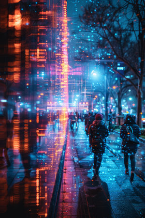 Vibrant glowing neon lines overlay creating dynamic background texture