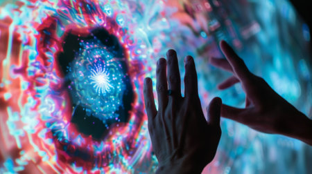 In the corner a smaller screen displays a mesmerizing digital kaleidoscope that visitors can control with hand gestures