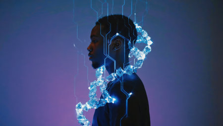 Young man exploring the world of artificial intelligence and dna